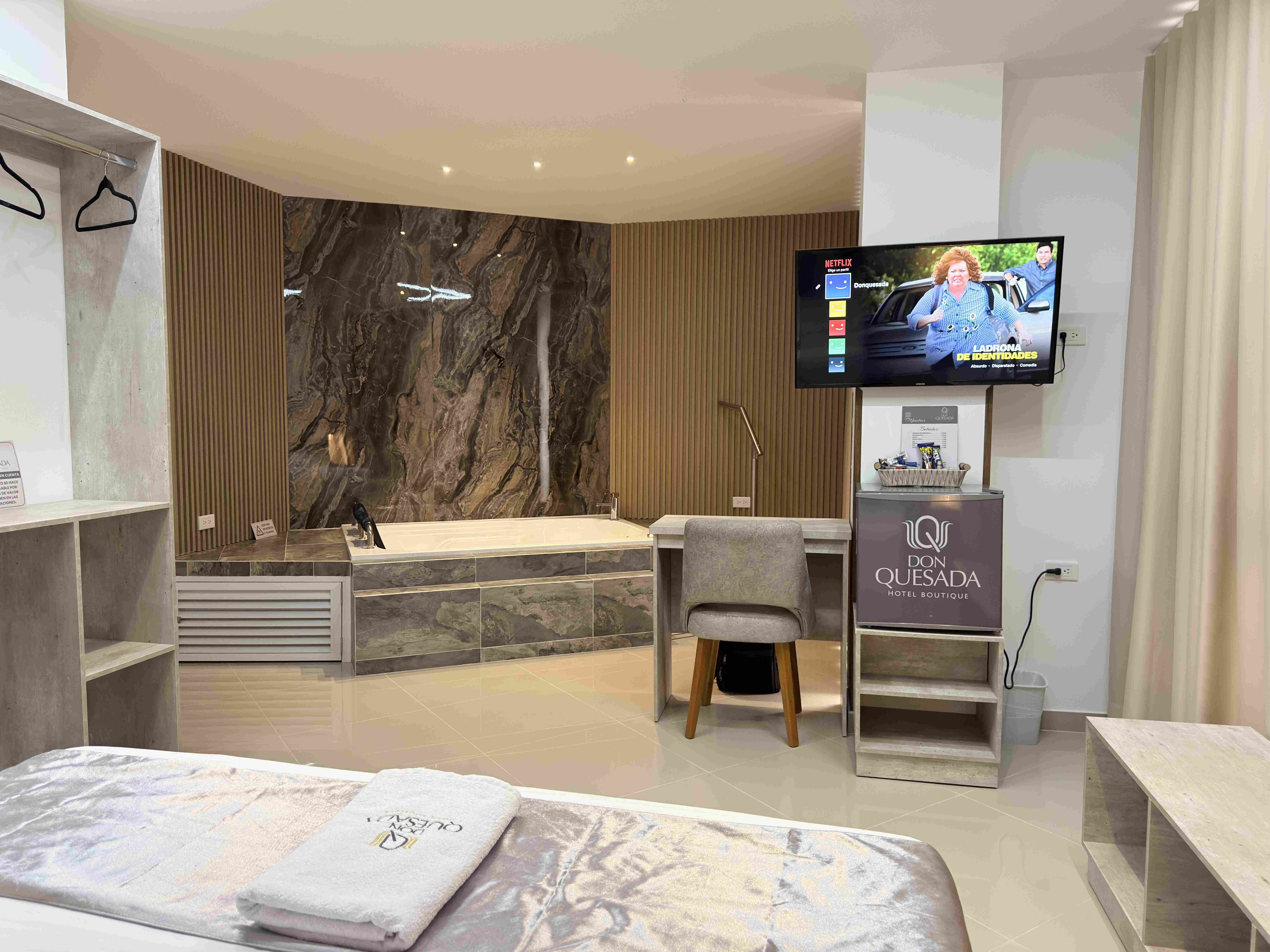 INCLUYE DESYUNO, HABITACION DELUX, CAMA QUEEN, AIRE ACONDIONADO, TV CON NETFLIX, AGUA CALIENTE